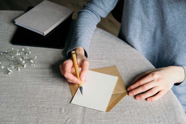 Wenn Sie in Schriftform kondolieren, schreiben Sie am besten von Hand auf schlichtem weißen Papier oder einer selbstgestalteten Trauerkarte. Ein Brief bietet aber mehr Platz und wird häufig eher aufbewahrt als eine Karte. Natürlich gibt es auch schöne Trauerkarten aus dem Handel, die Sie geschmackvoll beschriften können.